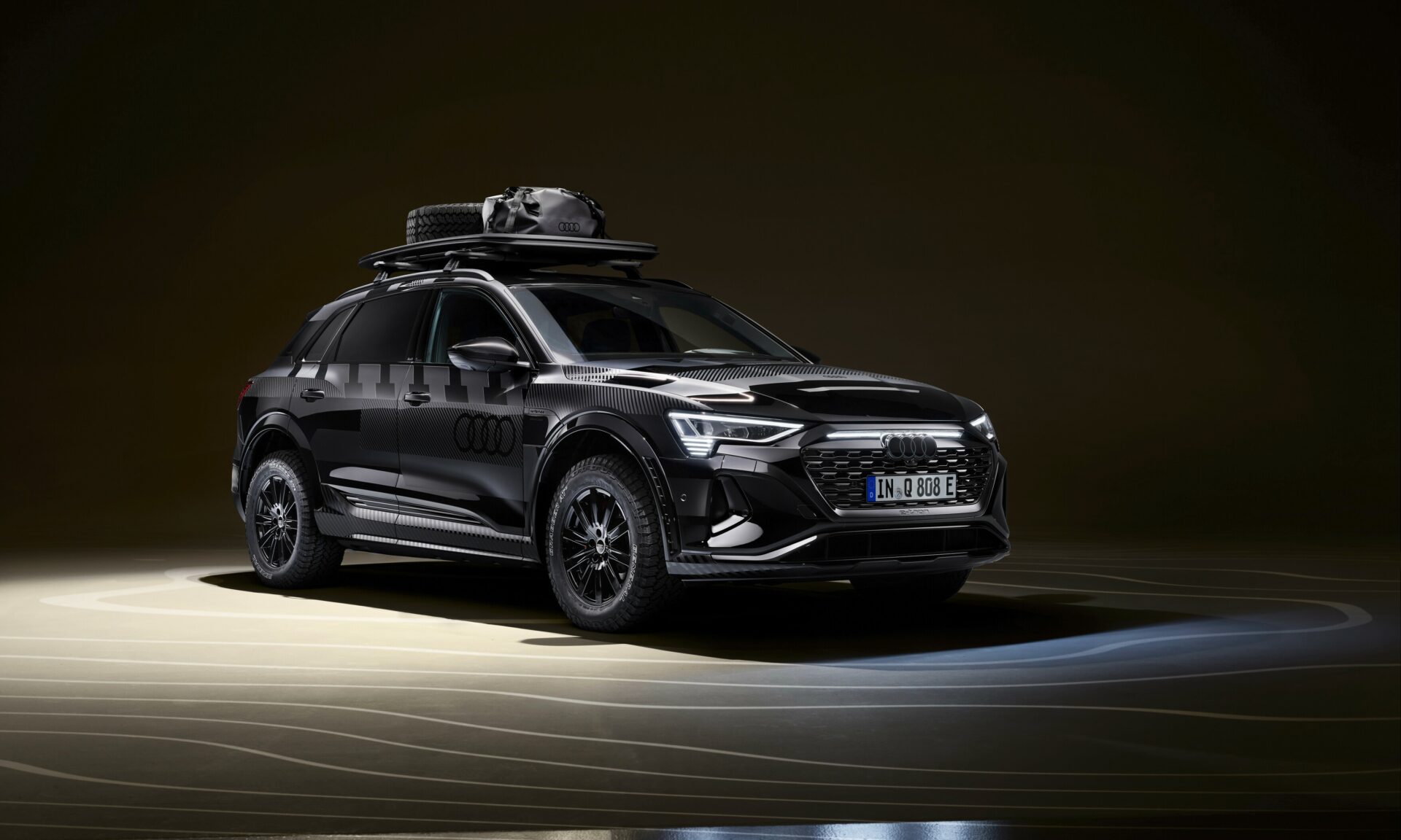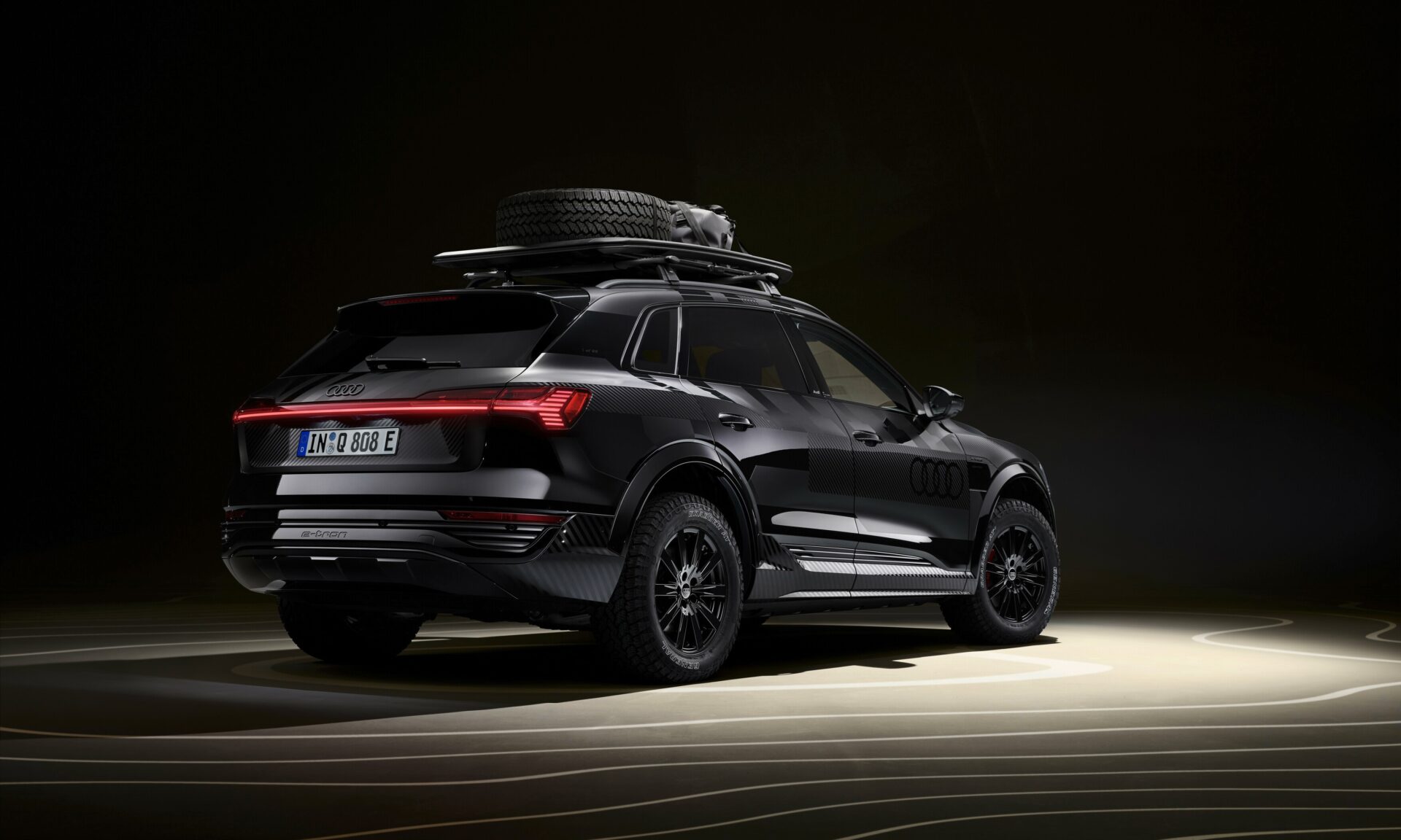 The enhancements include, among others, the fitment of a set of General Grabber AT3 all-terrain rubber. What’s more, this off-road-ready, emissions-free, Audi SUV is delivered with eight tyres. A roof rack (with a load capacity of 40 kg) is also included, as is straps for attaching accessories.
