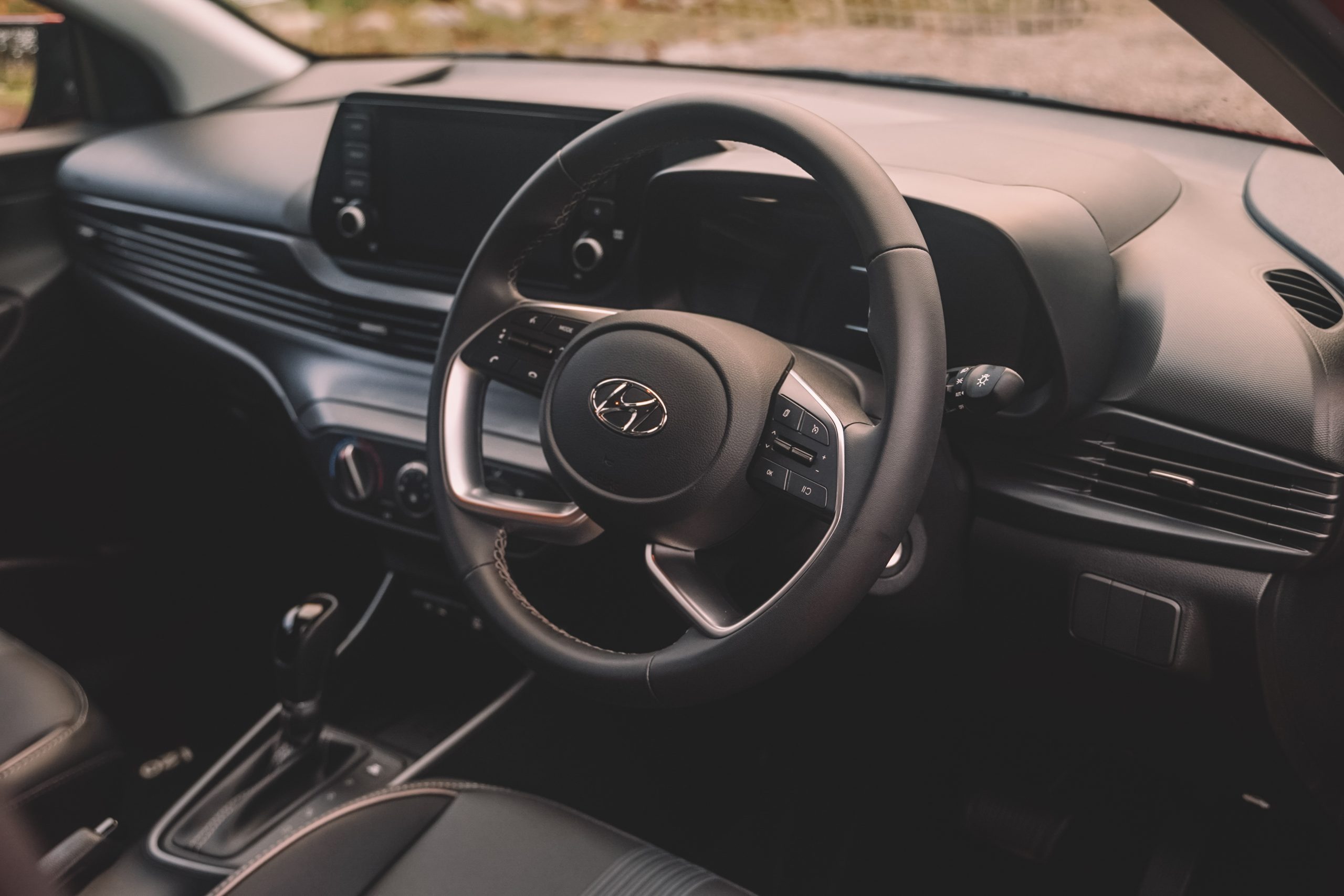 ‘Sensuous sportiness’. Groan. The marketing department has gone to town with the above-mentioned term describing the aesthetics of the new car but I’ll concede that it at last has a bit of aggression in its DNA. Our test car is a Fluid so comes with 16-inch alloys where the entry-level Motion gets 15-inch wheel covers. The i20 overall is 10mm longer than the car it replaces, and 41mm wider. There’s 88mm more rear legroom as well as improved luggage space. You now get side repeater lamps, a shark fin antenna to add to that exterior appeal. Hop aboard and you’ll encounter a 8-inch infotainment system with Apple Carplay and Android Auto, as well as a digital instrument cluster and multifunction steering wheel. The Fluid model is further gifted with interior mood lighting and air vents and USB ports at the rear. A rearview monitor is standard across the range.